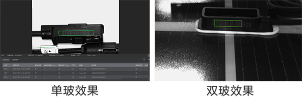 需求:電池片串焊排版后,匯流條處會(huì)貼附標(biāo)簽碼用于質(zhì)量追溯,需要透過(guò)一層毛玻璃,及一層EVA膠膜讀取,讀碼后實(shí)現(xiàn)至MES系統(tǒng)對(duì)接。