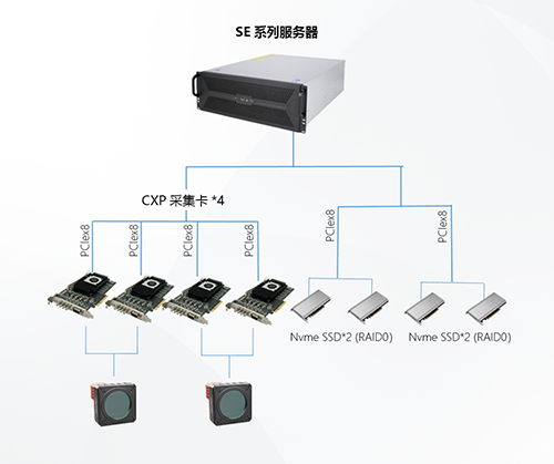 SE系列布置簡單、靈活,調(diào)試更便捷;一臺設(shè)備集多卡擴展、高速處理、高速存儲3合1,更省空間;搭配專業(yè)PCIe接口存儲設(shè)備,輕松實現(xiàn)高速存圖需求。