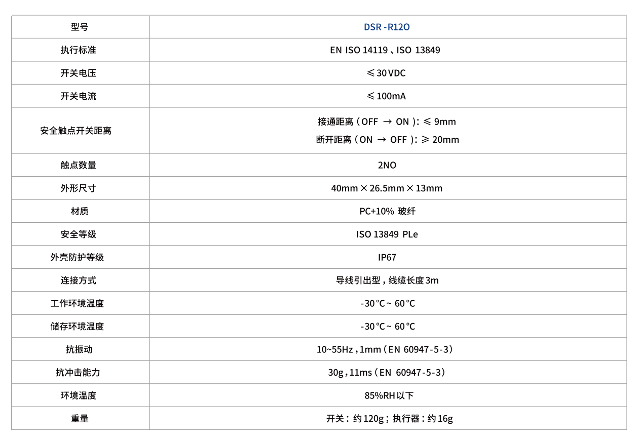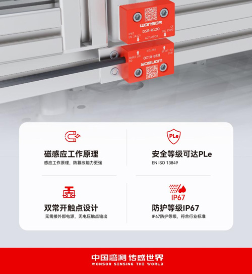 非接觸式安全開關DSR系列,采用磁感應工作原理,是一種帶執(zhí)行元件的傳感器,即便有一定安裝偏移,依然可以穩(wěn)定輸出,廣泛應用于設備門監(jiān)控。