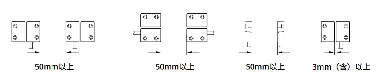 兩個產(chǎn)品相鄰安裝時,兩個產(chǎn)品的最小距離為50mm;產(chǎn)品開關與執(zhí)行器之間的最小安裝距離為3mm。