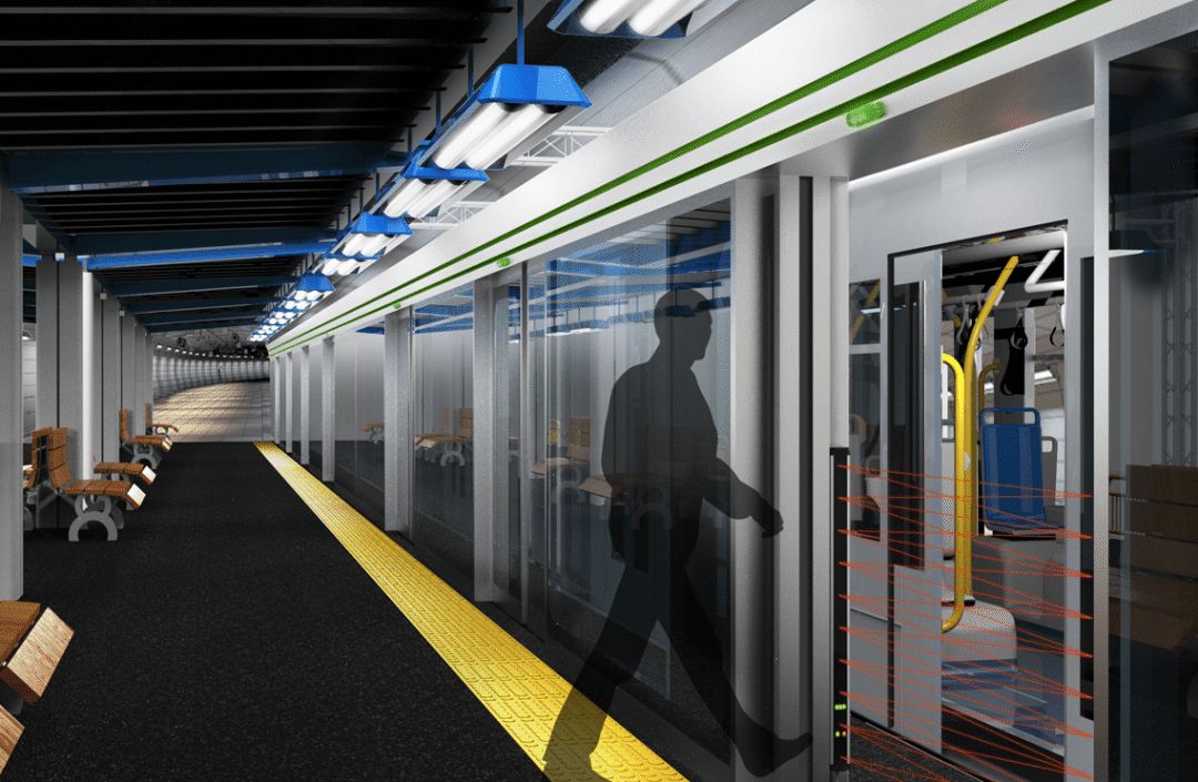 安裝在屏蔽門(PSD)上的光幕用于檢測(cè)乘客的存在。