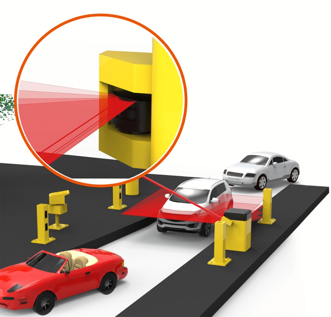 激光掃描儀通過(guò)檢測(cè)汽車的進(jìn)/出來(lái)控制停車場(chǎng)道閘欄桿。