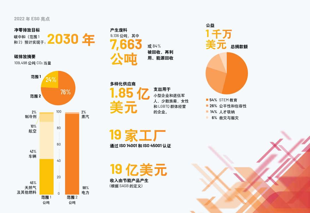 羅克韋爾不僅致力于開發(fā)創(chuàng)新的、可持續(xù)的產(chǎn)品和解決方案,同時打造注重員工安全且負(fù)責(zé)任生產(chǎn)的企業(yè)文化,并為生態(tài)合作伙伴提供資源以提高彼此的生產(chǎn)力和可持續(xù)發(fā)展能力。羅克韋爾《可持續(xù)發(fā)展2022年度報告》顯示,羅克韋爾2022年共計實現(xiàn)7,663公噸、84%的廢料被回收、再利用或能源回收。此外,由節(jié)能產(chǎn)品產(chǎn)生的收入達(dá)到19億美元,并捐出1千萬美元用于包含 STEM 教育、公平性和包容性以及人才吸納在內(nèi)的公益活動。羅克韋爾計劃于2030年實現(xiàn)范圍一(直接)和范圍二(間接)的碳排放凈零目標(biāo)。
