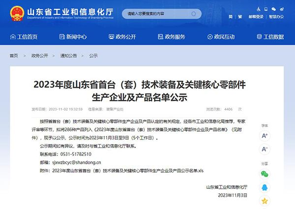 首臺(tái)(套)技術(shù)裝備由山東省工業(yè)和信息化廳組織認(rèn)定,是體現(xiàn)裝備制造業(yè)高質(zhì)量發(fā)展水平的重要標(biāo)志之一,對于“首臺(tái)(套)技術(shù)裝備”的研發(fā)、推廣和應(yīng)用是推動(dòng)智能制造轉(zhuǎn)型升級(jí)、打造工業(yè)強(qiáng)國的重要舉措,也是提升山東省裝備制造業(yè)核心競爭力的重大戰(zhàn)略。