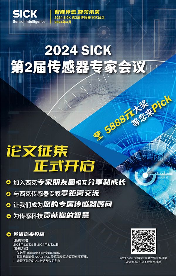 將投稿文章發(fā)送至: marketing-gcn@sick.com, 郵件標(biāo)題請(qǐng)備注“2024 SICK傳感器專家會(huì)議暨有獎(jiǎng)?wù)骷?并留下您的姓名電話及公司名稱。