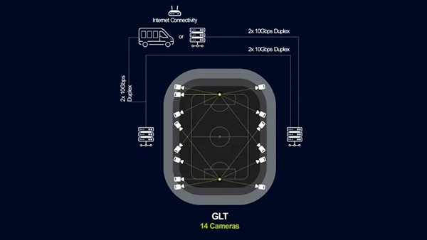 在足球場(chǎng)上,門(mén)線(xiàn)技術(shù)的配置由14臺(tái)相機(jī)組成,每秒可采集200幀(fps)圖像。因此,最新的vieww GLT系統(tǒng)提供了高水平的球體跟蹤精度,以符合準(zhǔn)確足球裁決的要求。國(guó)際足聯(lián)嚴(yán)格把控該系統(tǒng)的可靠性,并且每年均會(huì)在各個(gè)足球場(chǎng)上對(duì)設(shè)備進(jìn)行測(cè)試和認(rèn)證。