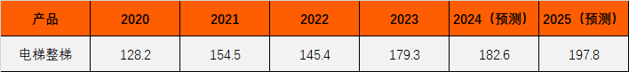 電梯行業(yè)整體市場(chǎng)數(shù)據(jù) 單位:百萬人民幣