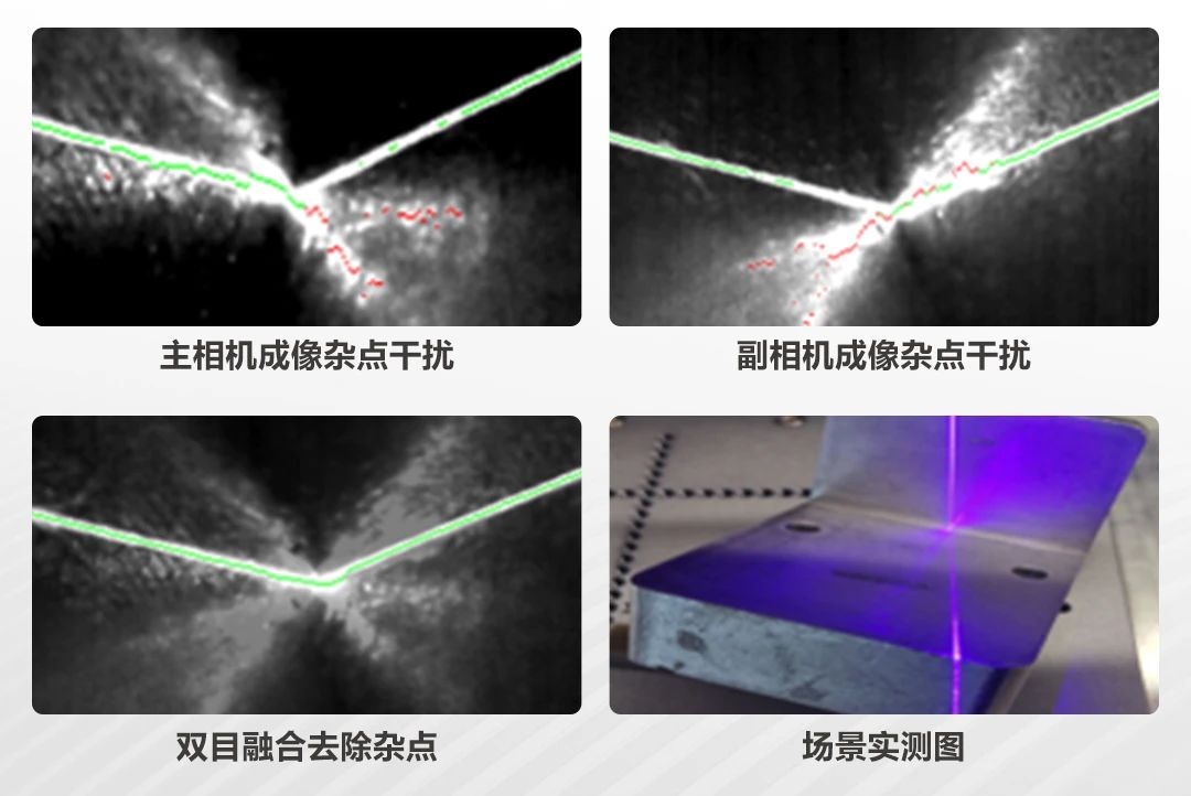 通過相機(jī)內(nèi)置的對稱設(shè)計(jì)的圖像采集模塊,拍攝被測物表面的激光線,進(jìn)而通過圖像處理,抑制雜光對點(diǎn)云提取的影響,相比雙相機(jī)對象拼接方案,進(jìn)一步提升了點(diǎn)云數(shù)據(jù)的準(zhǔn)確性和真實(shí)性。
