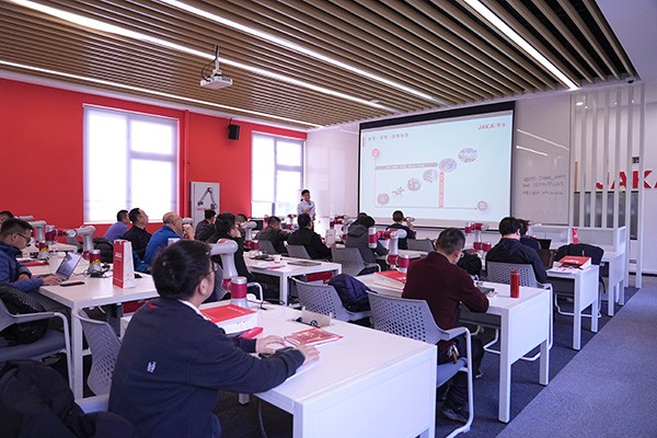 在節(jié)卡學院的培訓教室里,一群來自某頭部精密制造企業(yè)的各事業(yè)部技術專家正在進行著協(xié)作機器人技術與應用的專業(yè)培訓。該企業(yè)是節(jié)卡機器人的重點客戶之一,在良好的戰(zhàn)略合作推動下,節(jié)卡機器人為客戶制定了一套專業(yè)、系統(tǒng)的培訓課程,從智能制造理論到實踐,從知識學習到技術實操,旨在幫助客戶加速推動“兩化”發(fā)展的速度和效率。