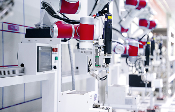 近年來,該企業(yè)在全球的十多個工廠上線了數(shù)百套節(jié)卡協(xié)作機器人,它們分別應用于電子電路、精密制造、通訊、光電顯示等板塊的生產(chǎn)制造。以電子電路板塊為例,F(xiàn)PC(柔性電路板)產(chǎn)線的鐳射生產(chǎn)工藝中原先皆靠人工放板、翻板和收板,一個人看管一臺機器,每天做著重復單調(diào)的動作。節(jié)卡機器人自研智能模塊化關節(jié)技術,產(chǎn)品集成度高、占地面積小、易于部署,可在近球體的空間范圍內(nèi)作業(yè)。其引入節(jié)卡機器人實現(xiàn)產(chǎn)線自動化升級后,一臺機器人可以兼顧四臺鐳射機,生產(chǎn)效率提高,工人也擺脫了繁瑣勞動,轉(zhuǎn)變?yōu)闄C器的管理者。