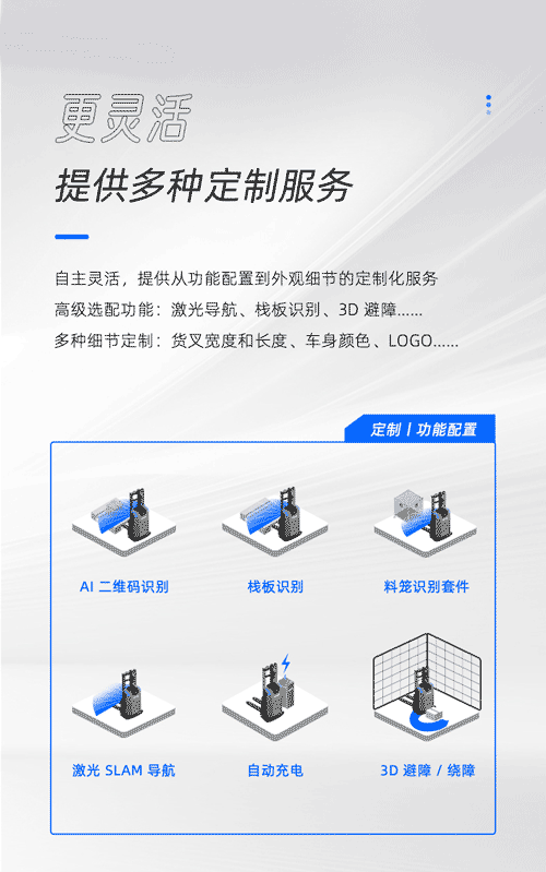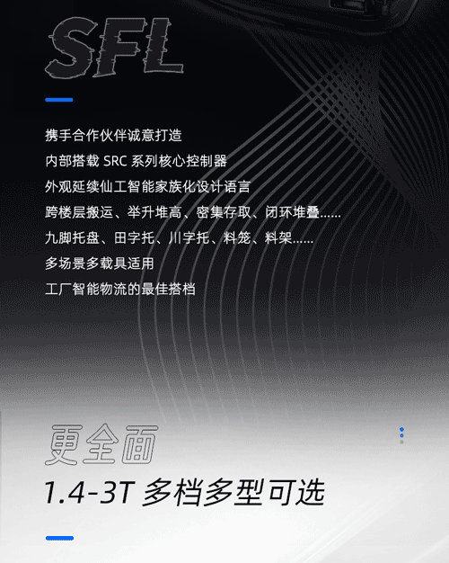 所有產(chǎn)品內(nèi)部搭載 SRC 系列核心控制器,包含搬運式、堆高式、平衡重式多種類型,覆蓋跨樓層搬運、舉升堆高、密集存取、閉環(huán)堆疊……多種場景,工廠智能物流的最佳搭檔!